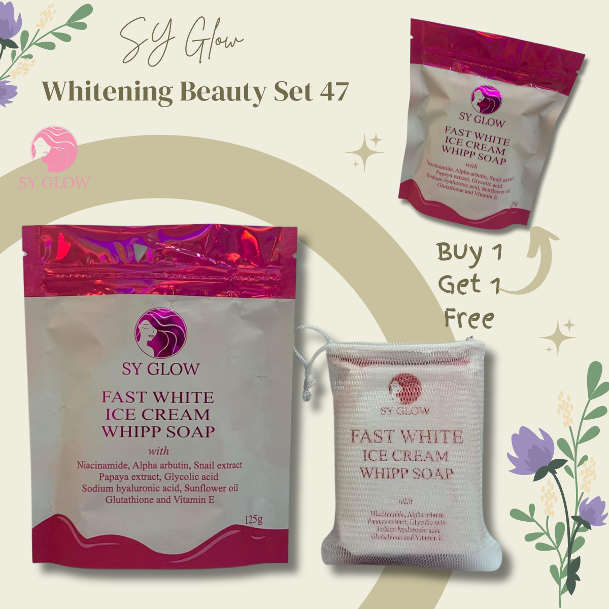 1 pc. SY Glow Fast White Ice Cream Whipp Soap (125g) as freebie